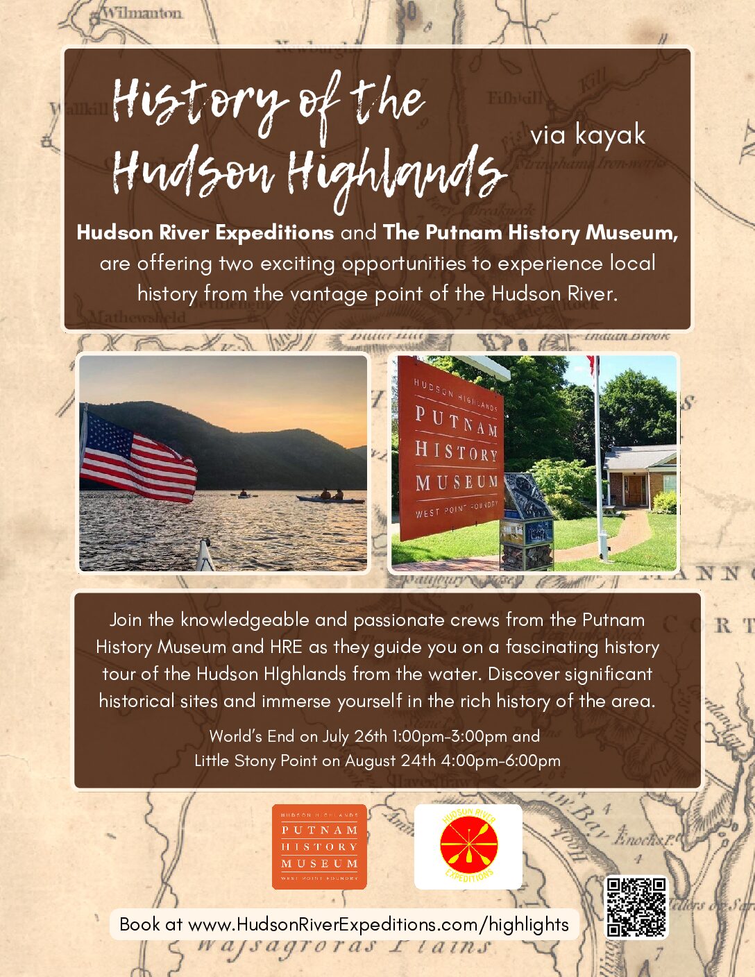Join the knowledgeable and passionate crews from the Putnam History Museum and Hudson River Expeditions as they guide you on a fascinating history tour of the Hudson Highlands from the water. During the Summer of 2024, there are two opportunities to experience history from the unique vantage point of the water – Friday, July 26th and Saturday, August 24th.