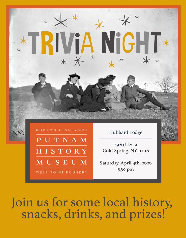 Are you a local history buff or new to the community and want to learn more? Test your knowledge at the PHM’s Local History Trivia Night on Saturday, April 4th, 5 pm, at Hubbard Lodge in Cold Spring.