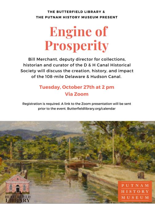 Zoom Lecture: The Engine of Prosperity Registration: https://getlocalhop.com/bill-merchant-presentation-on-the-delaware-and-hudson-canal-engine-of-prosperity/event/zFGdMSLDrP/?ticketing=1 + Add to Google Calendar + iCal / Outlook export The event is finished. Date Oct 27 2020 Expired! Time 2:00 pm - 3:00 pm Share this event